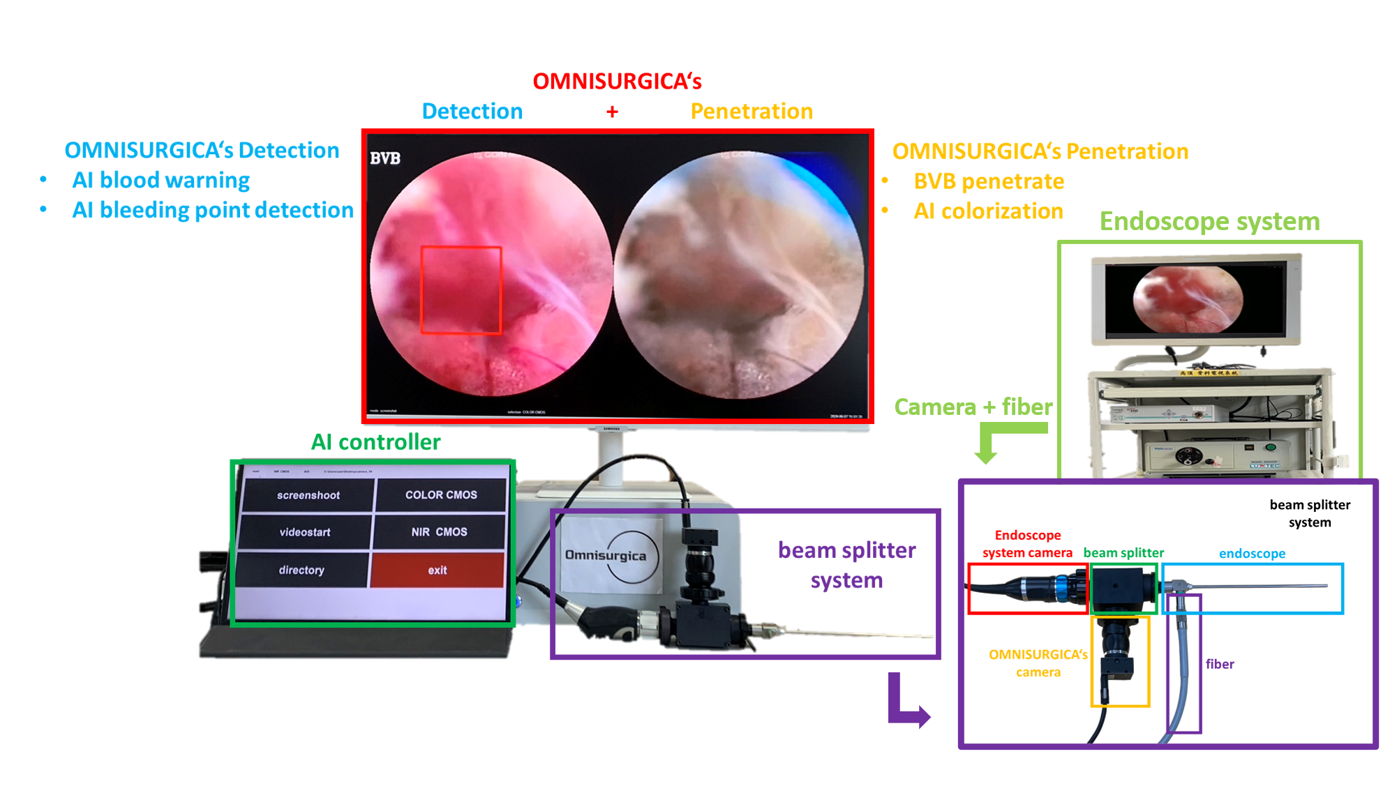Using algorithms to locate bleeding points and provide surgeons with real-time instructions and warnings. When the bleeding is coming, TranScope will show the “BVB“ and localize the bleeding point at first time, noticing doctors where location will be danger in surgeon.